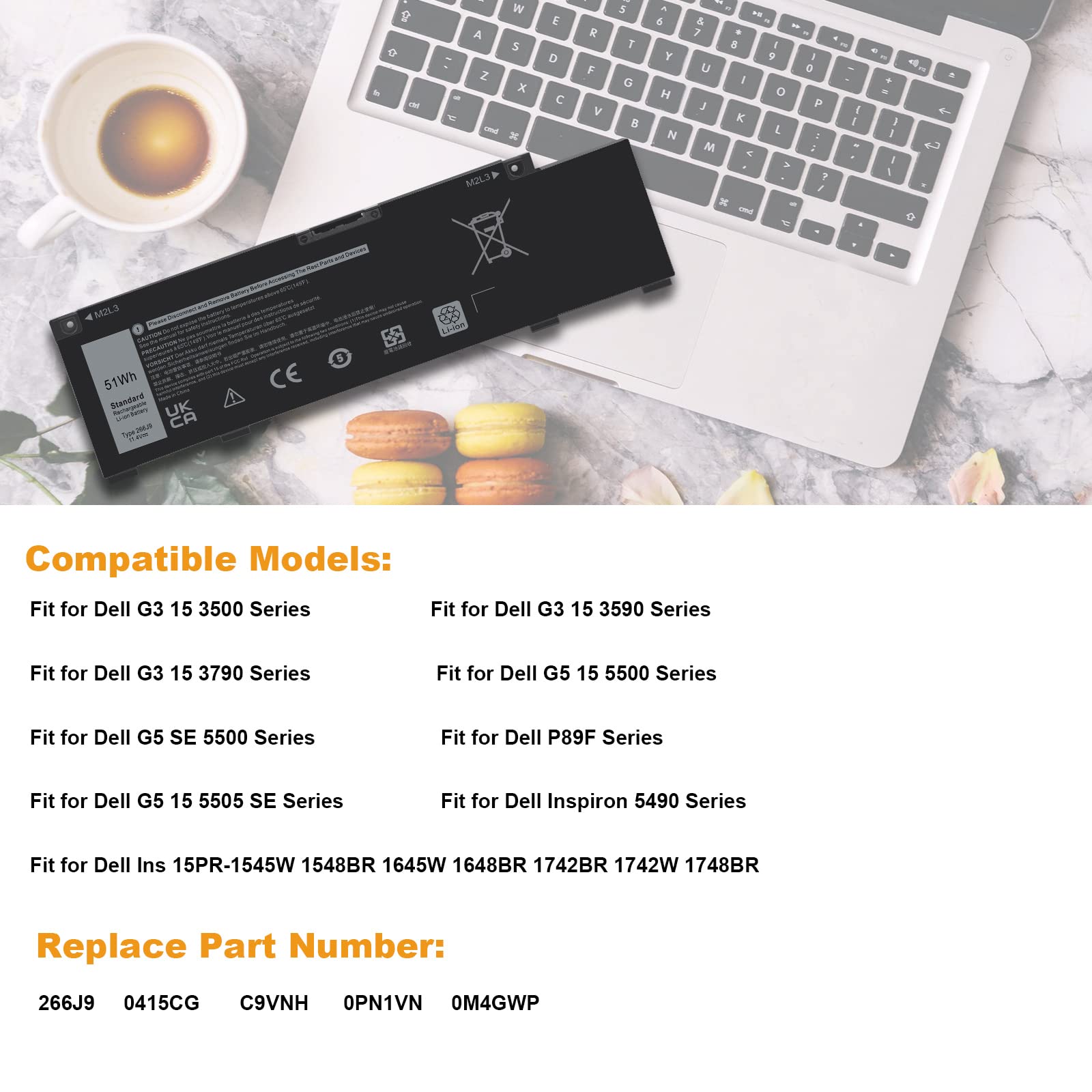 • 【Compatible Part Number】MV07R 266J9 0JJRRD 0415CG C9VNH 0PN1VN 0M4GWP (Note: There are 2 different models MV07R 68Wh 4-Cell & 266J9 51Wh 3-Cell for Dell G3 15 3500 3590 G5 5500 5505, please confirm with your original battery before purchase)
