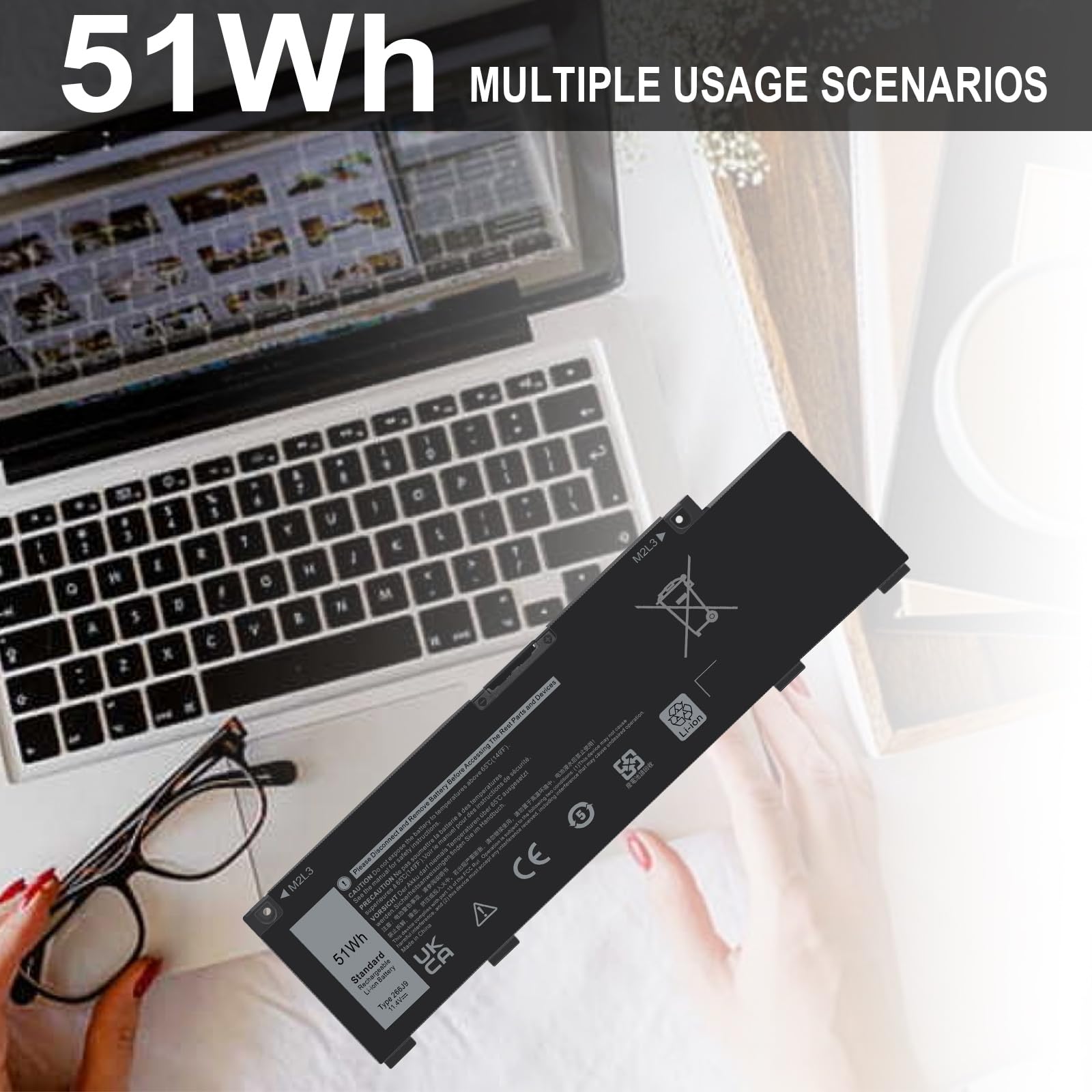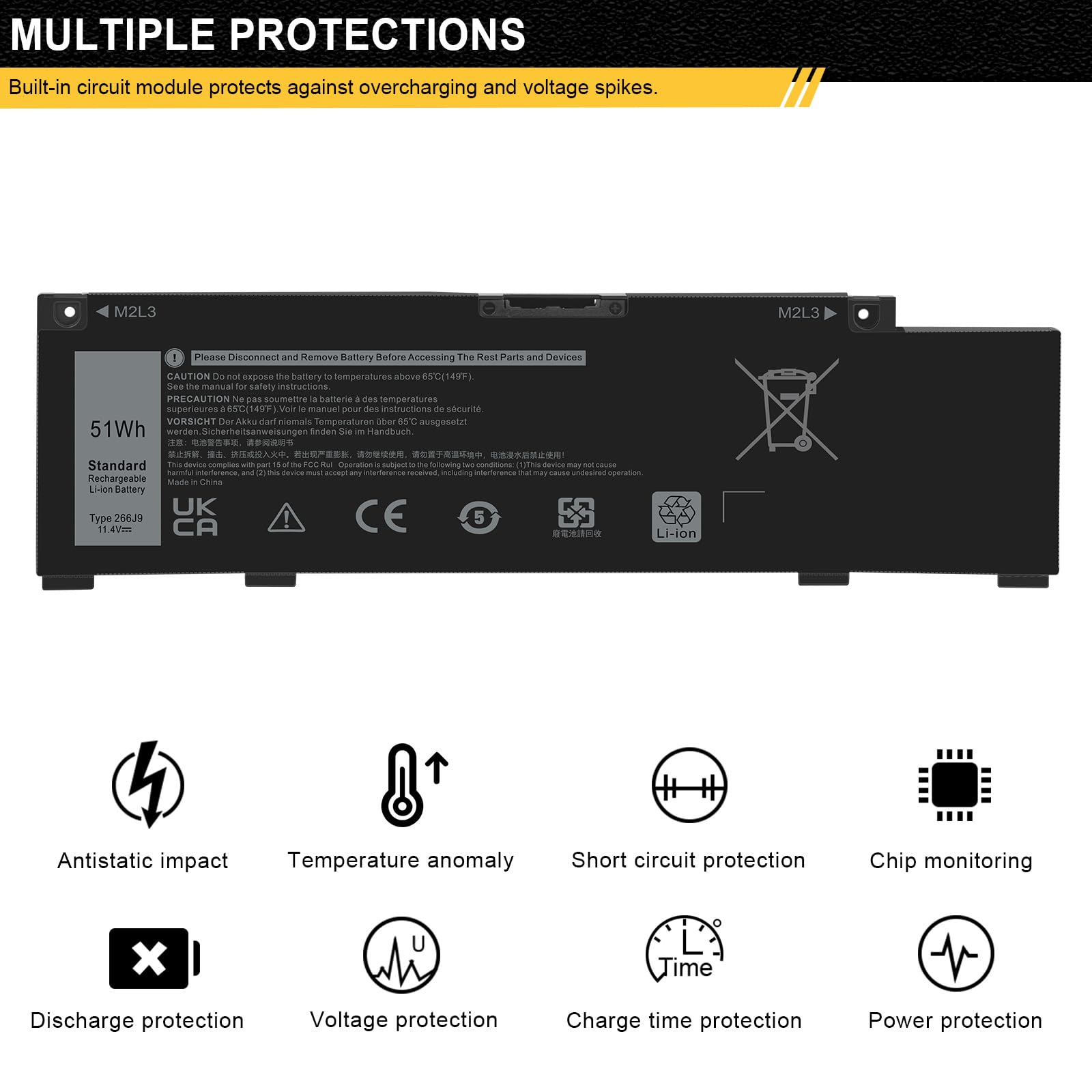• 【Specifications】 Model: 266J9; Battery Type: Lithium polymer; Voltage: 11.4V; Capacity: 51Wh; Cells: 3 cells; Color: Black